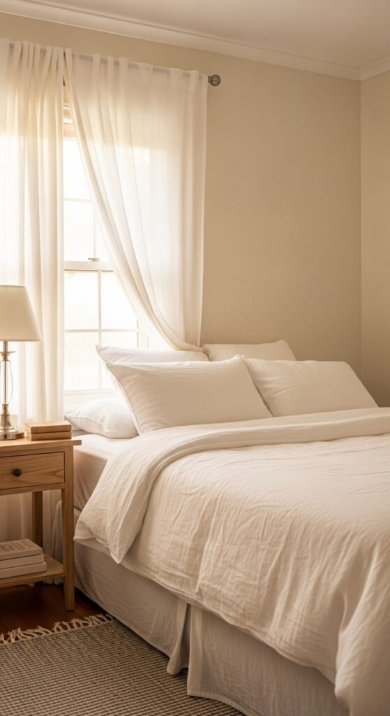 - Don’t be afraid of all-white—it’s not boring when you layer textures like linen, wood, and rattan