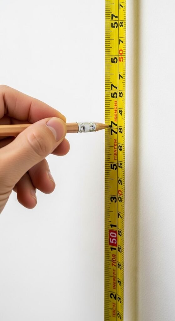 - Add 57 inches – Measure up from the floor and mark lightly with a pencil