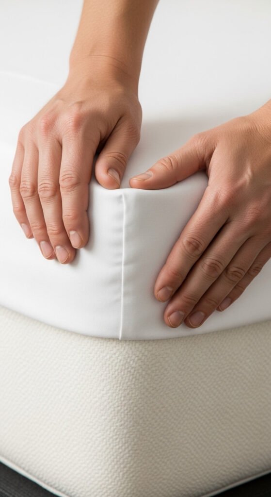 - Mattress protector first: A quality mattress protector adds subtle loft and keeps everything feeling fresh. Choose one that’s breathable and fits snugly — no bunching.