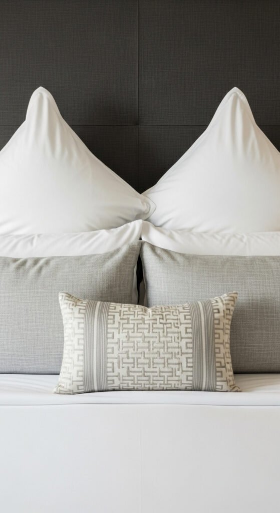 - Accent or decorative pillow — 1 centered pillow (a bolster or a smaller square) as the finishing statement.