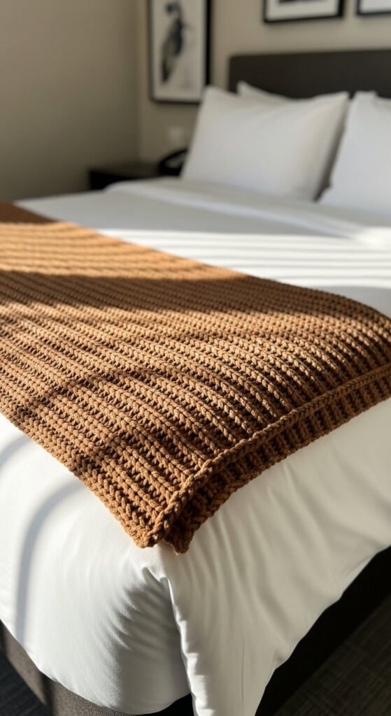 - Choose a throw in a complementary texture — waffle knit, chunky wool, or velvet all work beautifully.