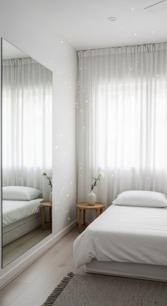 - Try a mirrored furniture piece — like a mirrored dresser or side table — for a subtle, stylish effect.