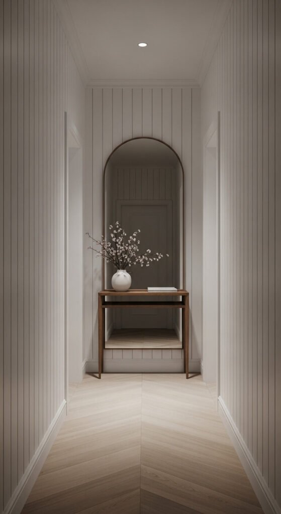 - Hang tall, narrow artwork or gallery walls that stretch upward.