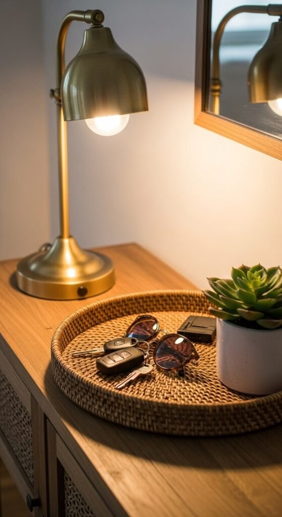 The trick is choosing storage solutions that look like decor. A beautiful leather tray serves the same purpose as a plastic organizer, but one makes you smile every time you walk through the door.