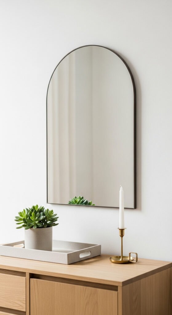 The most classic choice? A mirror. Whether it’s ornate and vintage, clean and modern, or arched and boho, a mirror adds depth, light, and elegance. But you can also use: