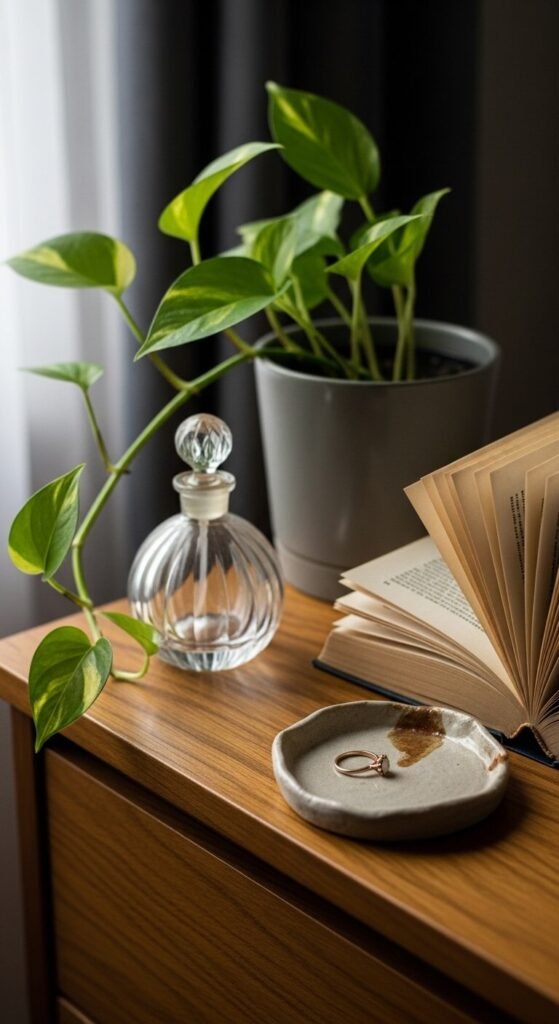 Your dresser top doesn’t need to be complicated — it just needs to be considered. A mirror, some layers, a tray, a plant, and a touch of you. That’s the whole formula.