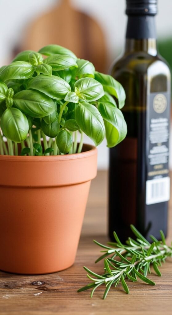 - A potted herb like basil, rosemary, or thyme (functional and beautiful)
